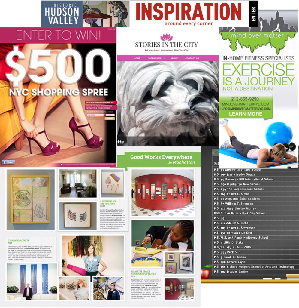 I’m a New Yorker, a painting enthusiast and an interactive designer. I’m an avid supporter of the arts both visual and performance. I’ve spent most of my career supporting the marketing department of various corporations. I create banner ads, postcards, posters, marketing emails, newsletters, design web page layouts and create small business websites. I work both in print and digital form. I have lots of ideas and I’m here to help you and your business shine.