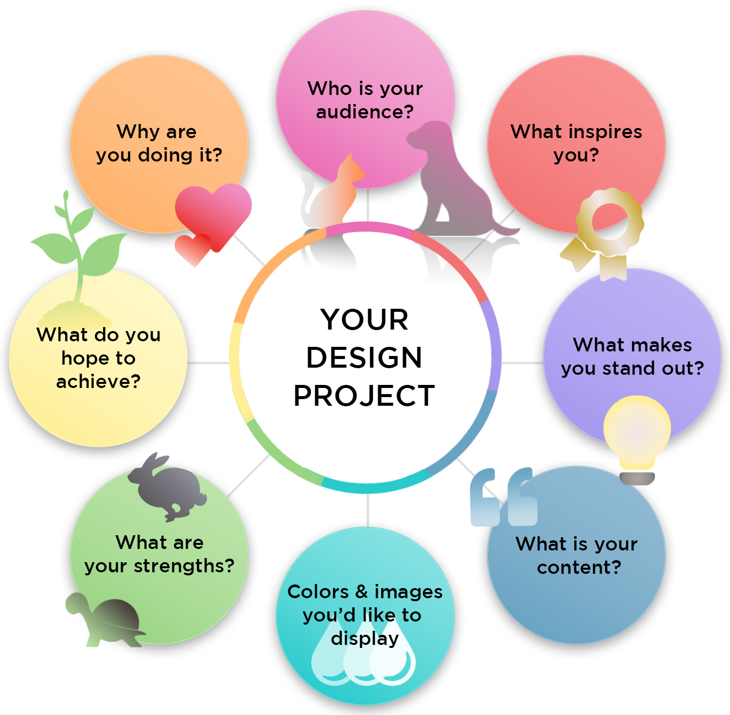 To begin a new project, we’ll sit down and discuss your vision. What would you like to tell your audience? What are the issues you are having? Do you need help designing marketing emails or banner ads to advertise specials on your website? Do you need a brand new website or a website that just needs new branding? I’m here to help you document this and start putting things together. We can use a variety of tools to make things as easy as possible, this should not add stress to your day but lift your worries.
